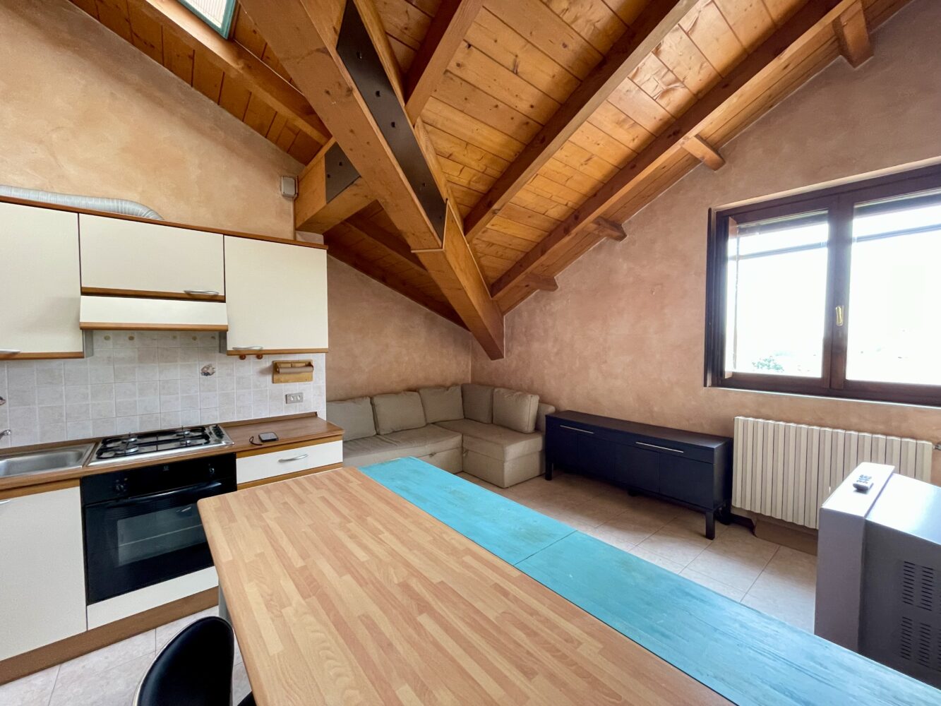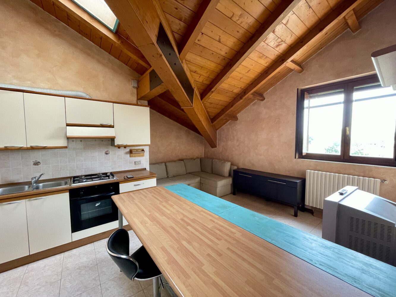 Aria di casa propone in affitto, in contesto residenziale, posto nelle immediate vicinanze dei principali servizi, appartamento di due locali oltre servizio all’ultimo piano.