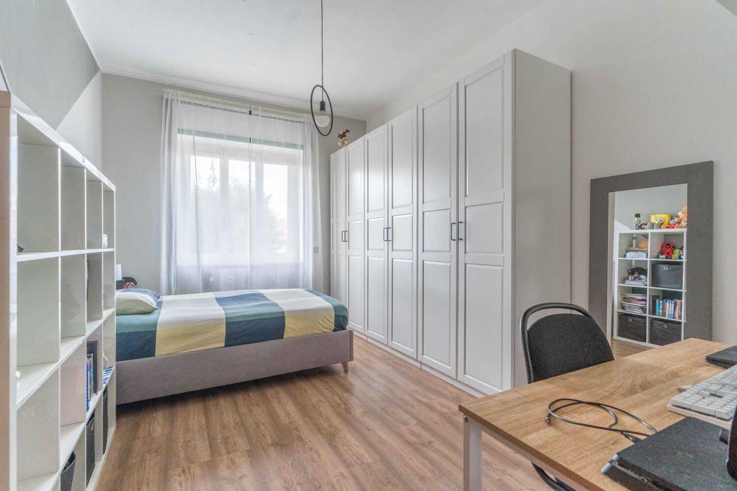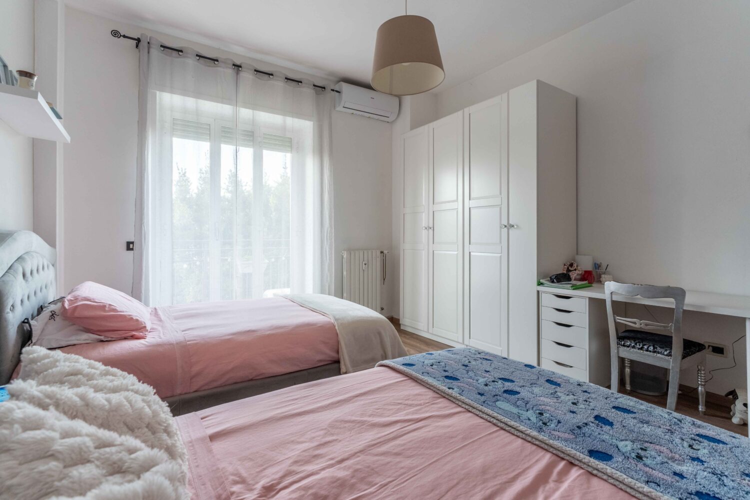 La zona notte è ben separata e pensata per garantire tranquillità e privacy. Troviamo due camere matrimoniali di ottime dimensioni, una delle quali presenta un balcone privato. Il bagno, finestrato, è completo sia di vasca che di doccia, soluzione perfetta per soddisfare ogni esigenza quotidiana. Completa l’appartamento un comodo ripostiglio.