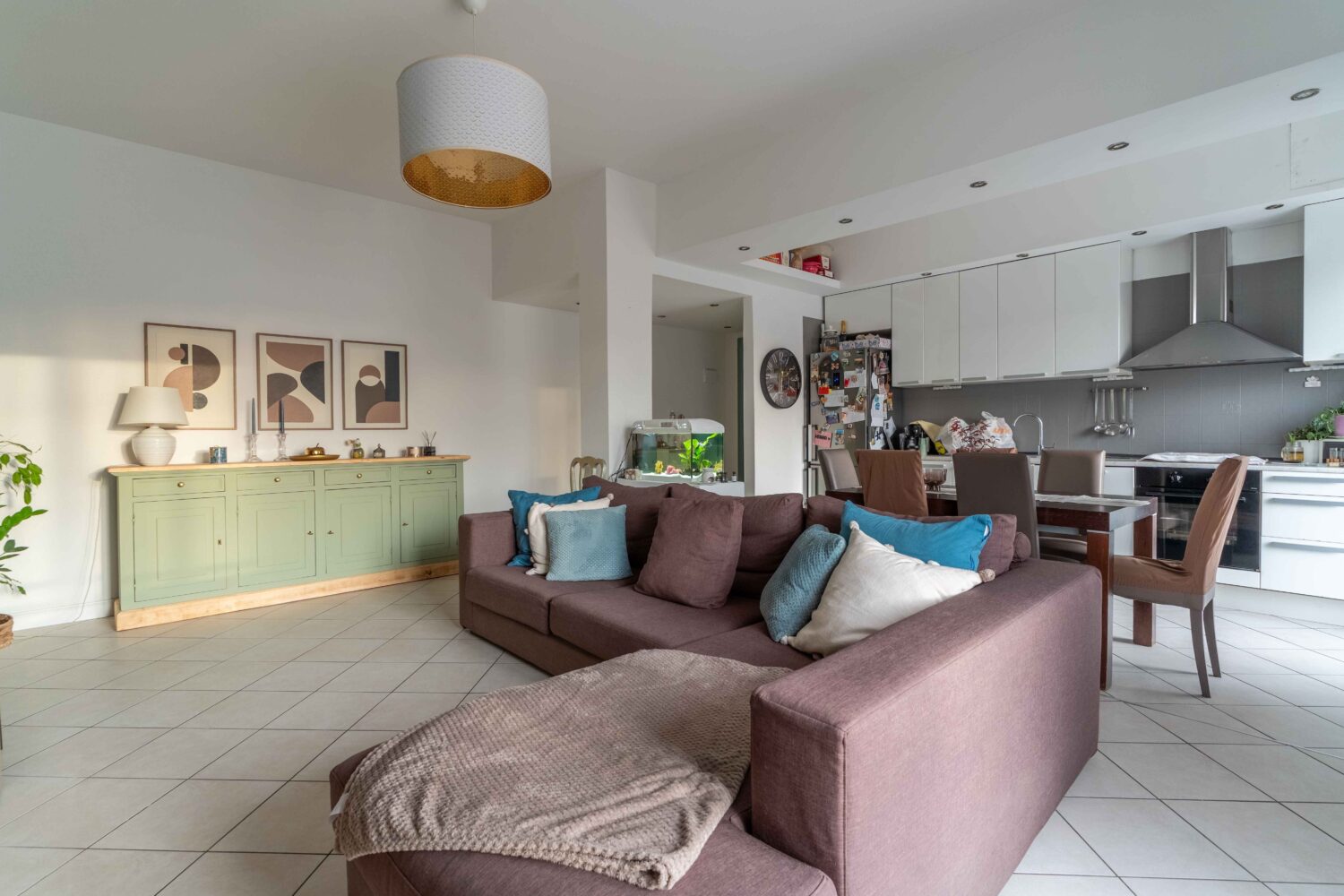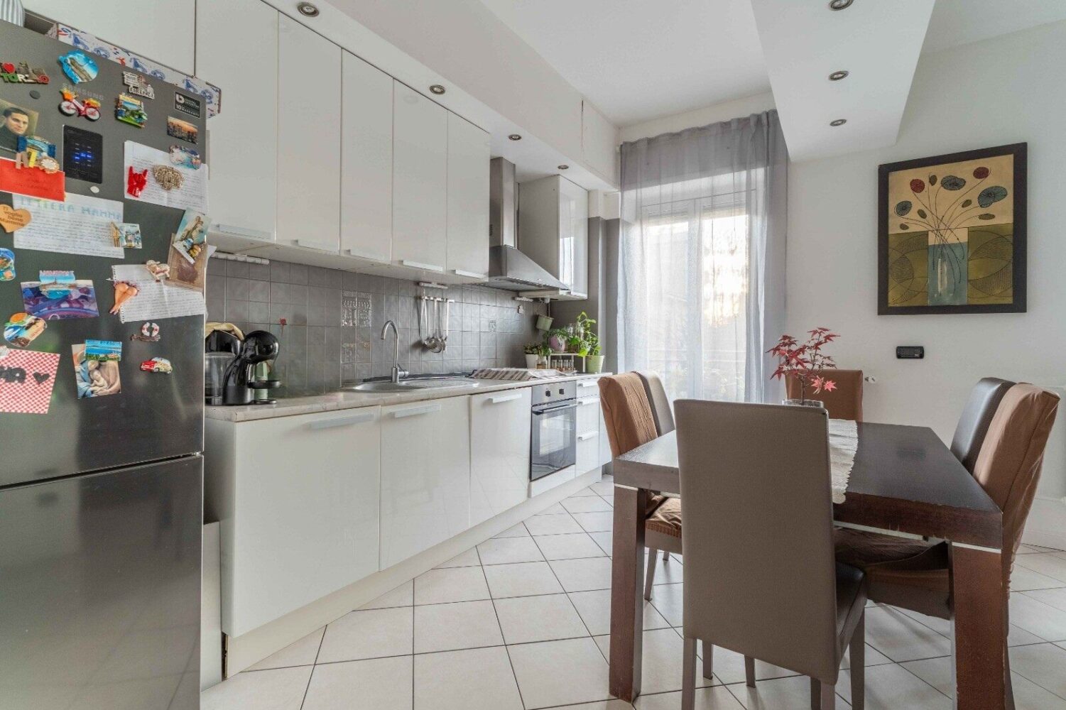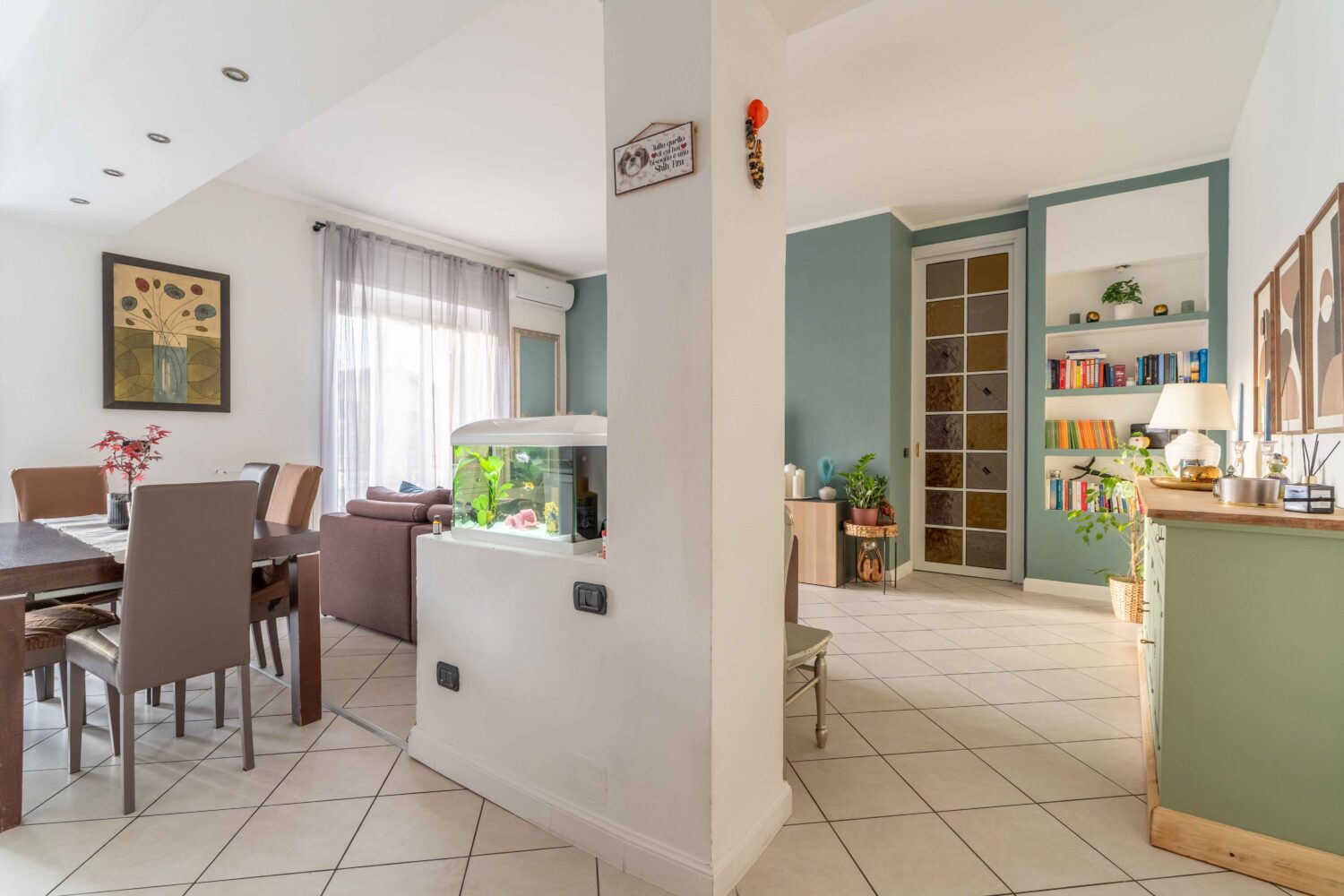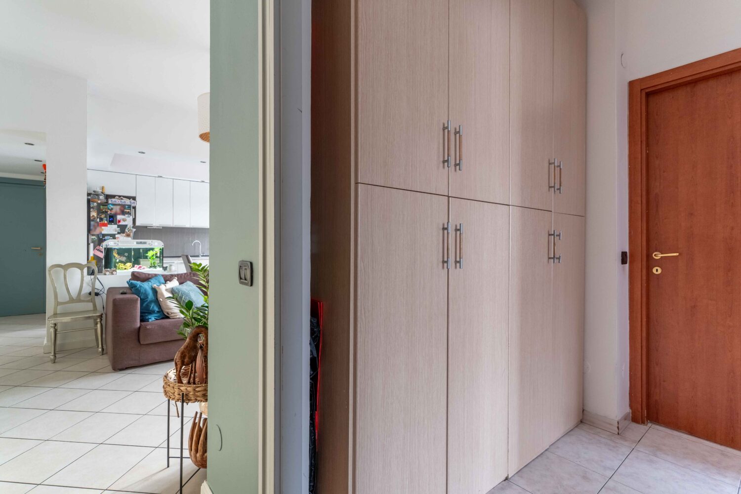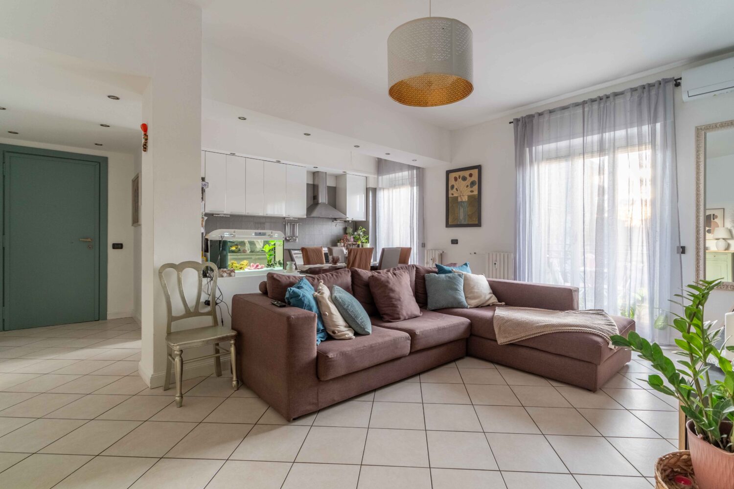 L’appartamento colpisce fin dall’ingresso per la luminosità e per l’ottima distribuzione degli spazi. La zona giorno è ampia e accogliente, con un soggiorno generoso che ospita una cucina a vista ben organizzata ed integrata, pur mantenendo una chiara distinzione tra area living e zona pranzo. Da qui si accede ad uno spazioso balcone, ideale per trascorrere momenti di relax all’aperto.