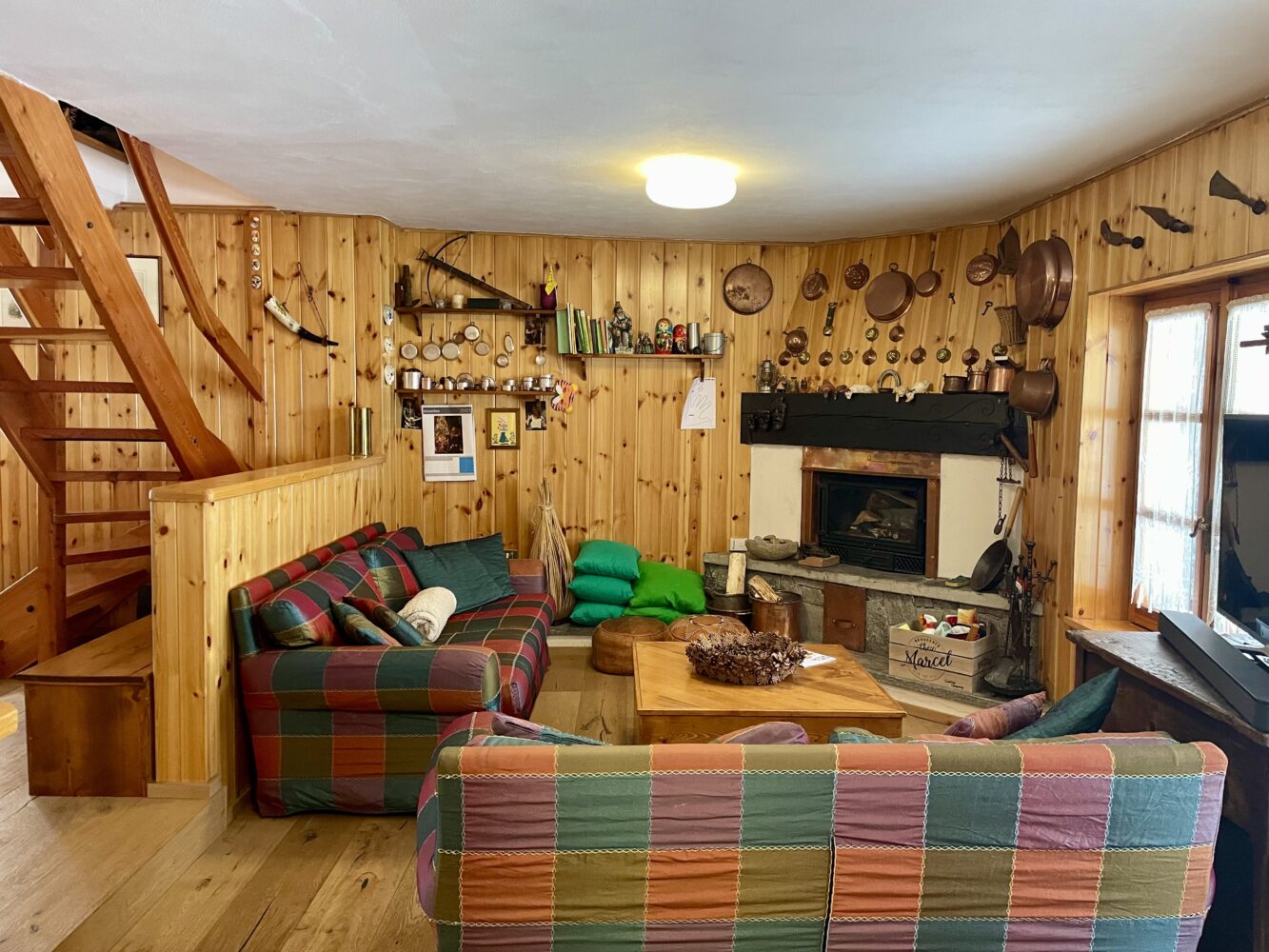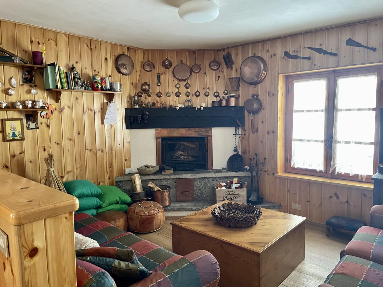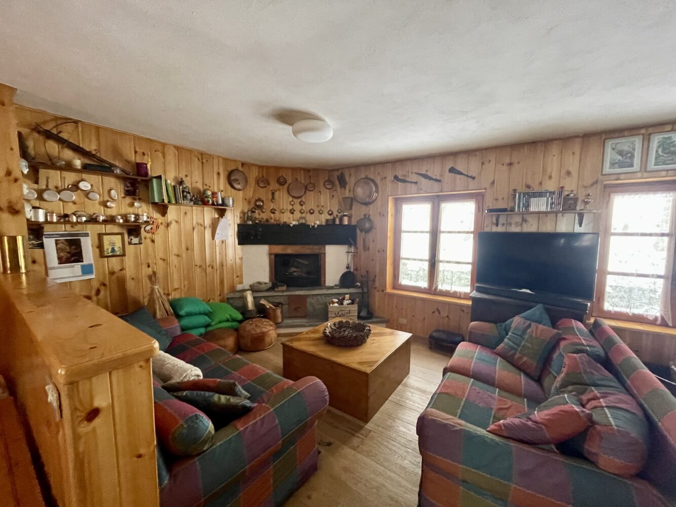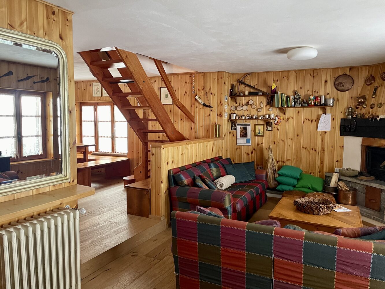Al piano terra troviamo l’ingresso che si apre su un ampio e luminoso soggiorno con camino creando un’atmosfera calda ed accogliente, ideale per momenti di relax dopo una giornata all’aria aperta.