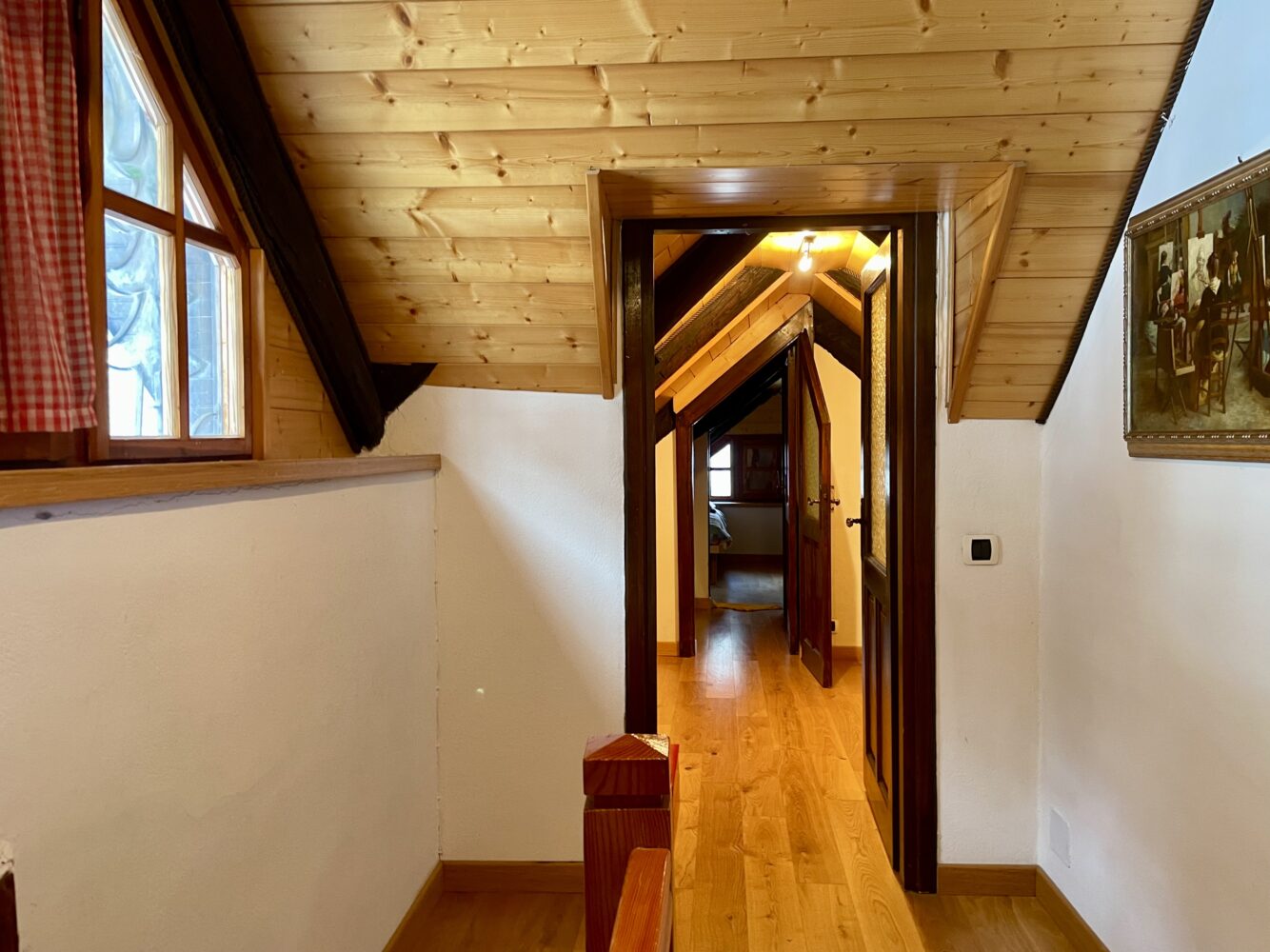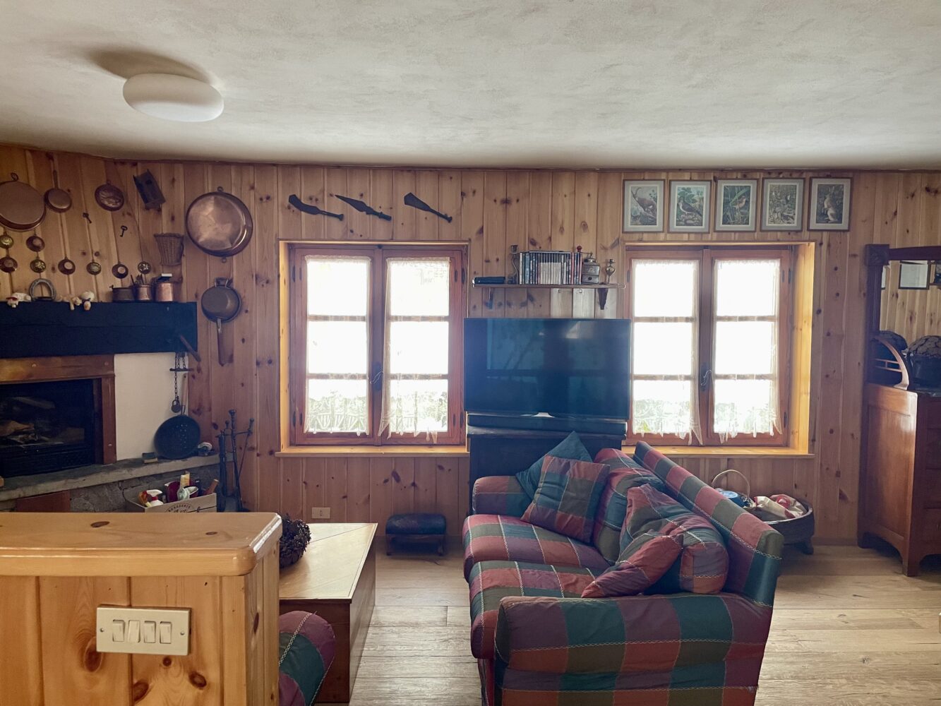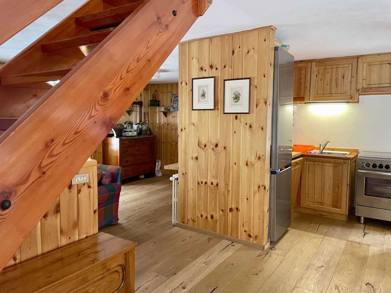 Al piano terra troviamo l’ingresso che si apre su un ampio e luminoso soggiorno con camino creando un’atmosfera calda ed accogliente, ideale per momenti di relax dopo una giornata all’aria aperta.
