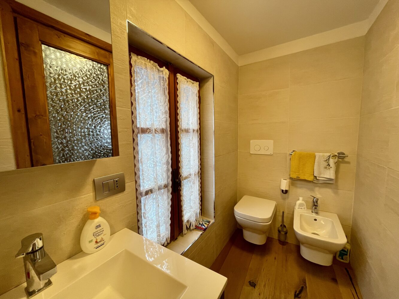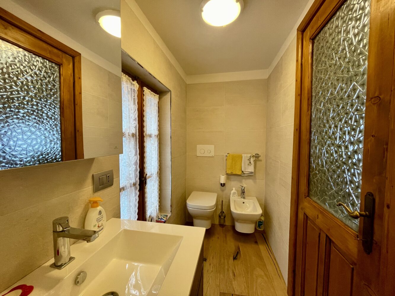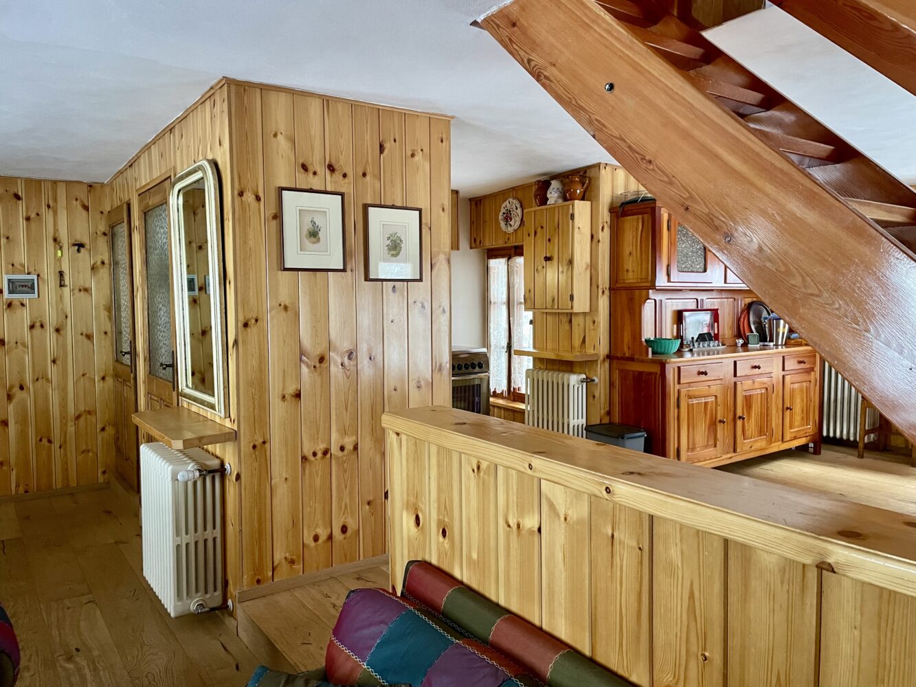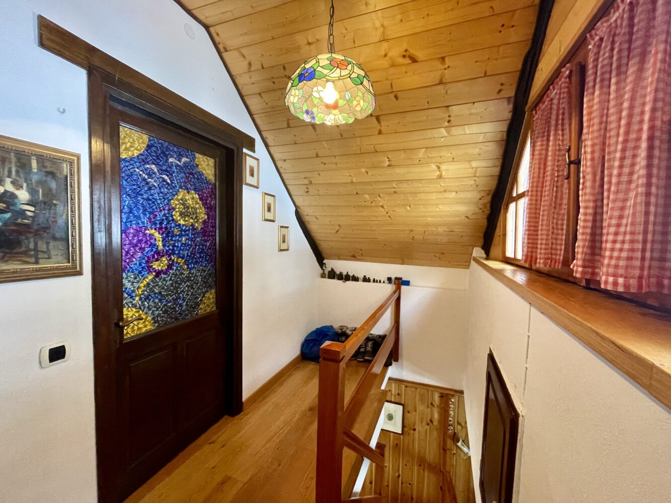 Al piano terra troviamo l’ingresso che si apre su un ampio e luminoso soggiorno con camino creando un’atmosfera calda ed accogliente, ideale per momenti di relax dopo una giornata all’aria aperta.