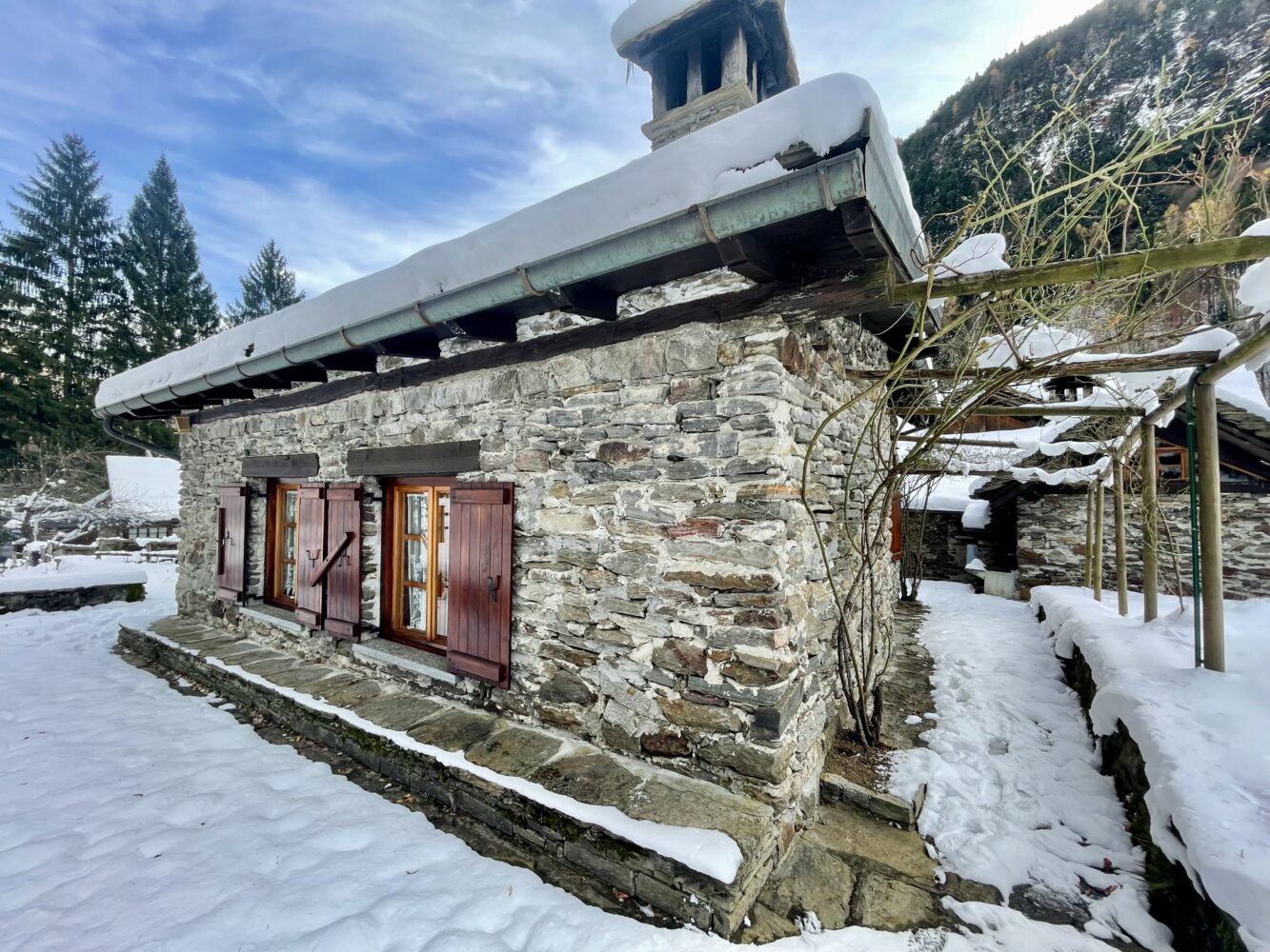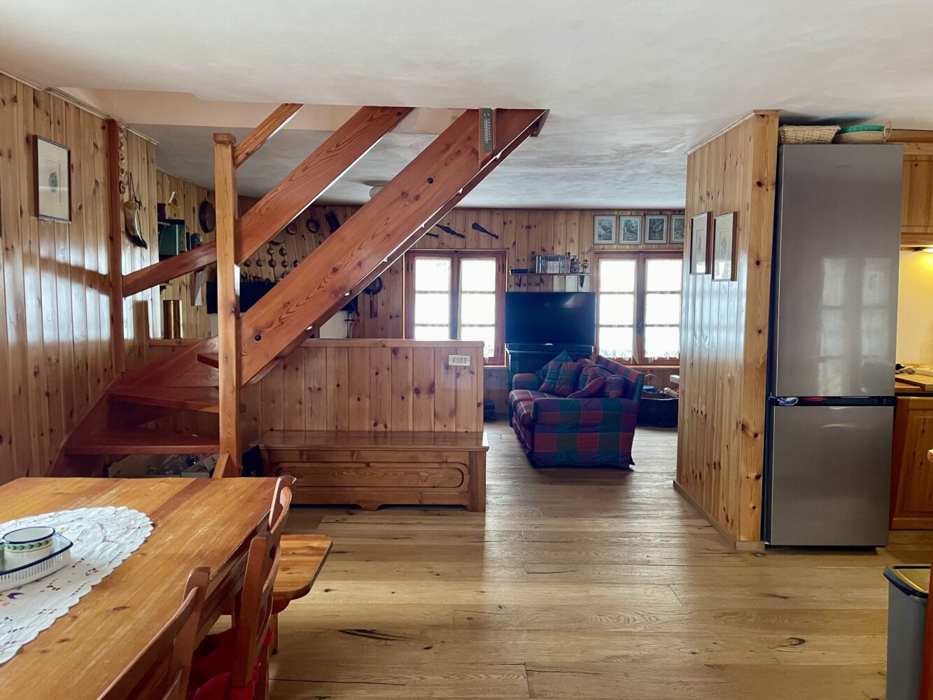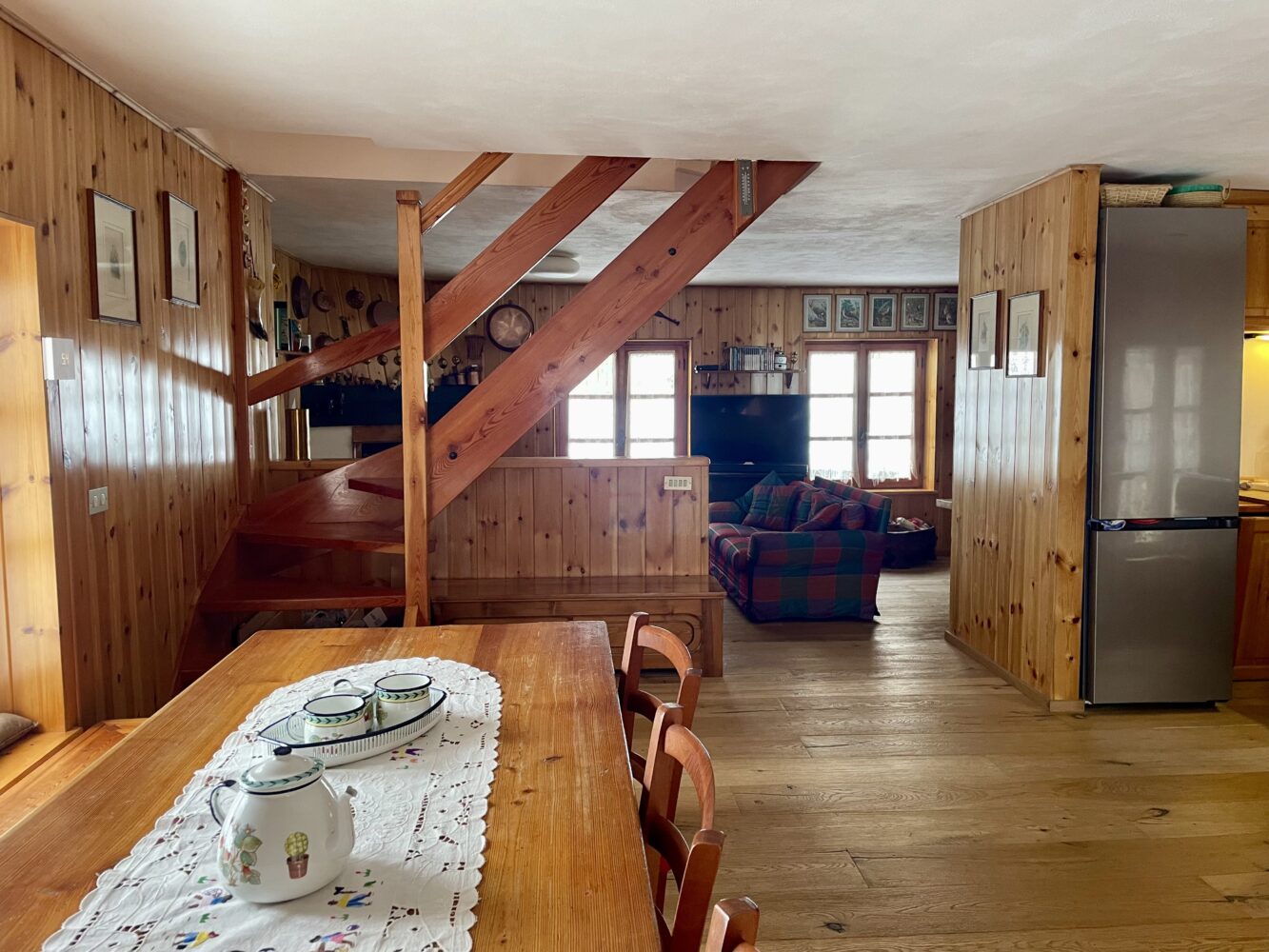 Al piano interrato si trova una spaziosa cantina, ideale per conservare attrezzature da montagna o semplicemente per offrire ulteriore spazio di archiviazione.