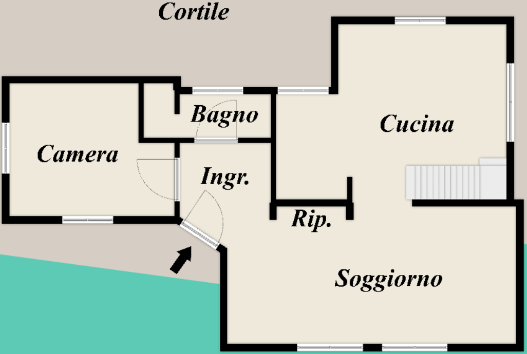 Completano il piano una camera da letto e un elegante bagno, che rendono questa zona perfetta per soggiorni confortevoli.