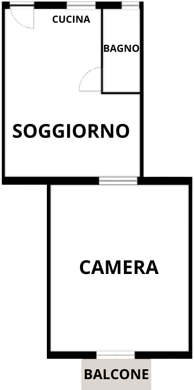 L’immobile, collocato al piano primo, è disposto come segue: Ingresso su soggiorno con cucina a vista, bagno finestrato con doccia e per concludere ampia camera matrimoniale con balcone.