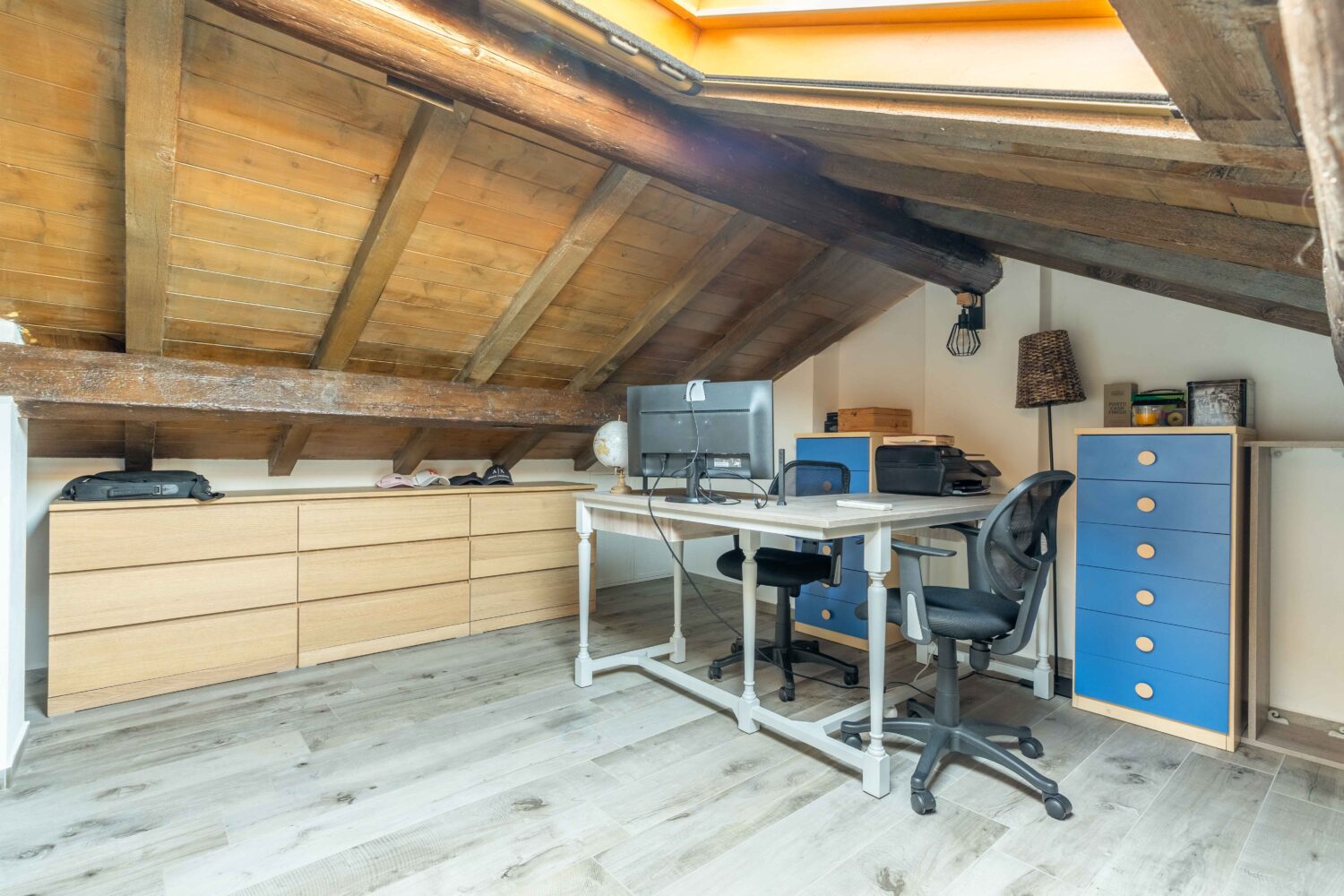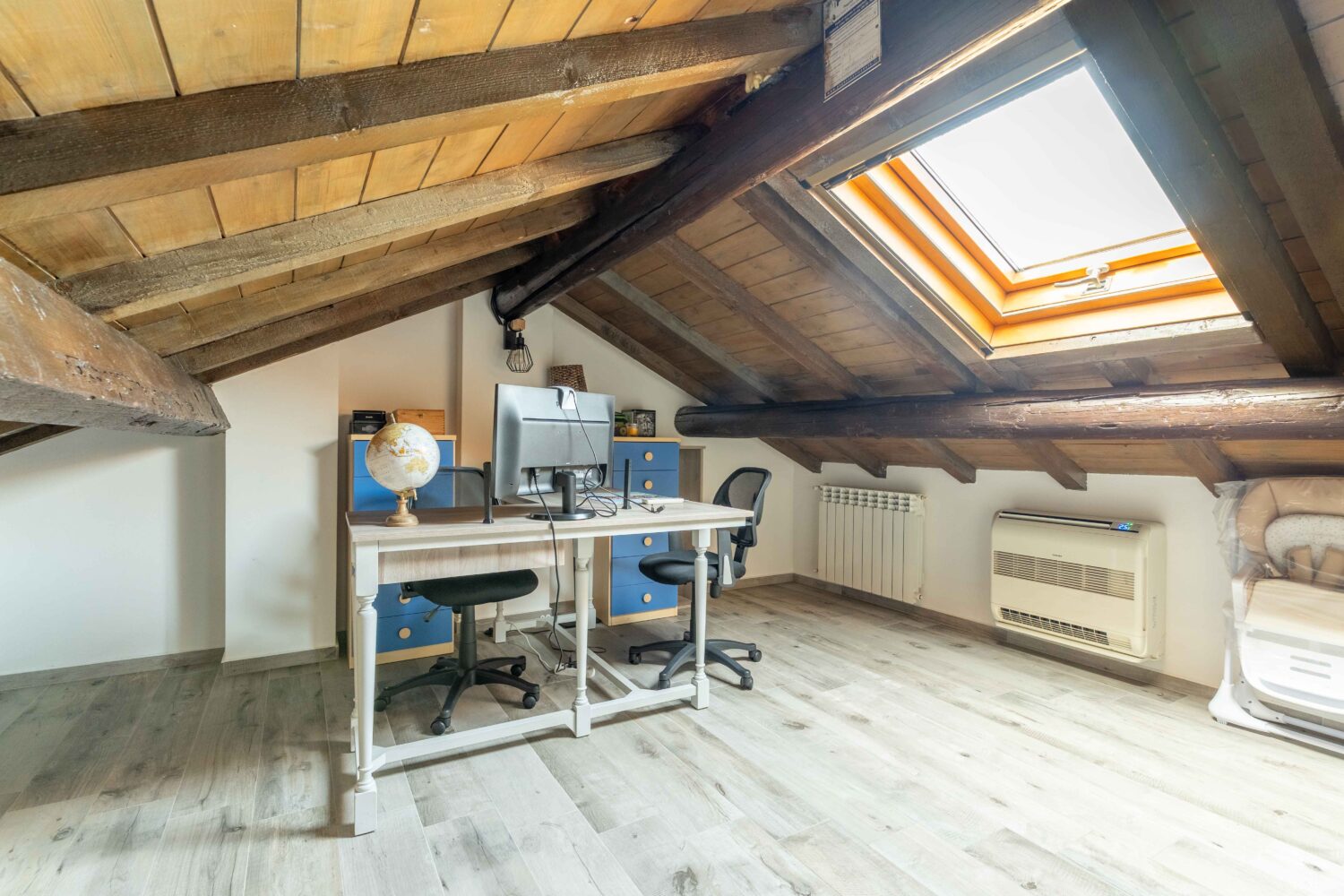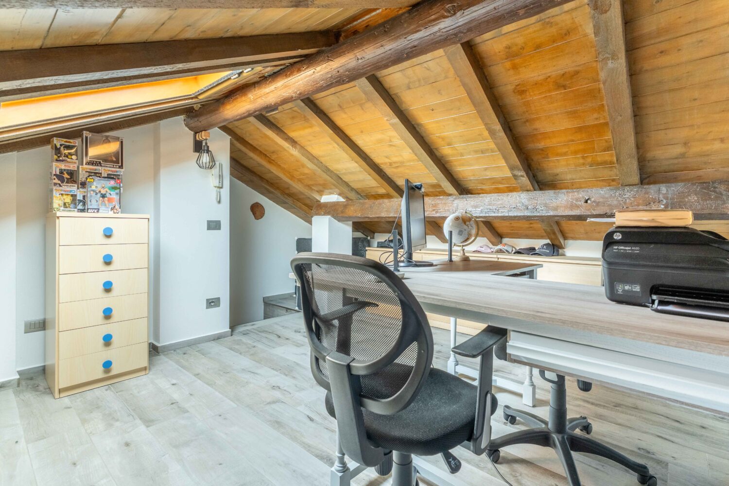 Al secondo piano, un locale sottotetto rifinito, ideale come studio, sala hobby o area relax.