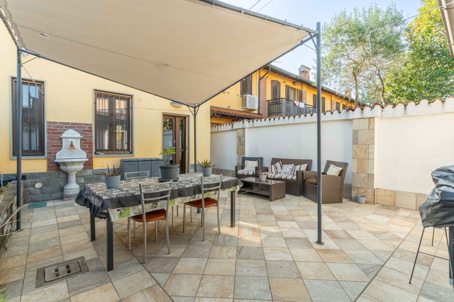 In una tranquilla zona residenziale di Rosate, proponiamo in vendita una porzione di villa bifamiliare completamente ristrutturata nel 2016, disposta su tre livelli abitativi e dotata di cortile privato su tre lati.