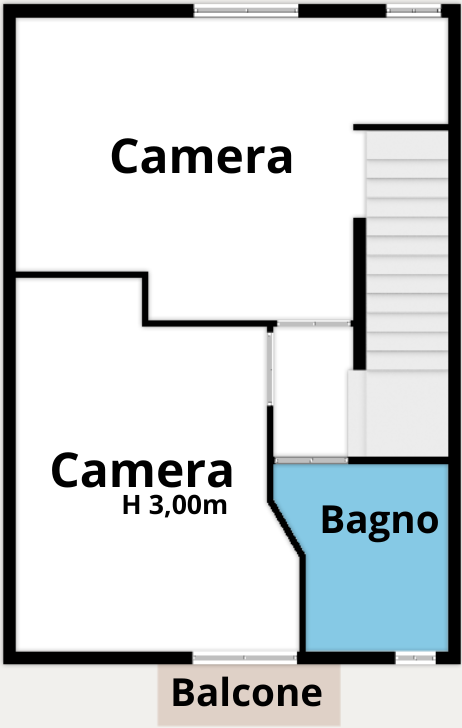 Il primo piano ospita una camera matrimoniale, una seconda camera da letto e un ulteriore bagno finestrato con doccia.