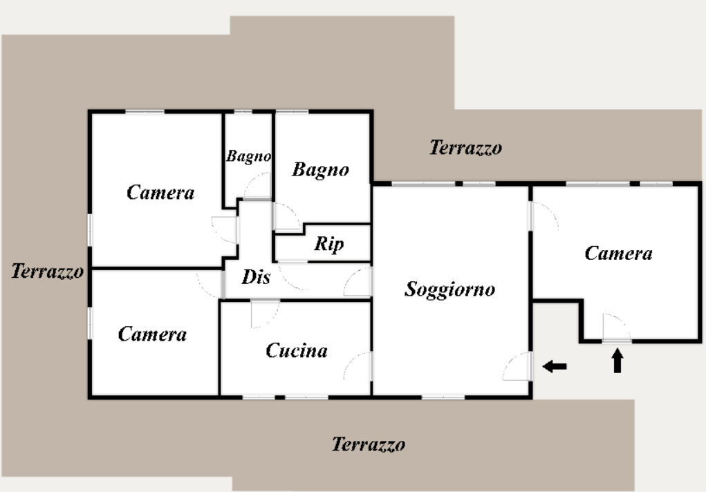 Ampio ed elegante Soggiorno, Cucina abitabile, tre grandi Camere Matrimoniali, due Bagni entrambi finestrati, comodo Ripostiglio e un grande terrazzo di 90 metri quadri, luogo perfetto per godersi tramonti spettacolari o organizzare cene all’aperto, con una vista impareggiabile sul mare.